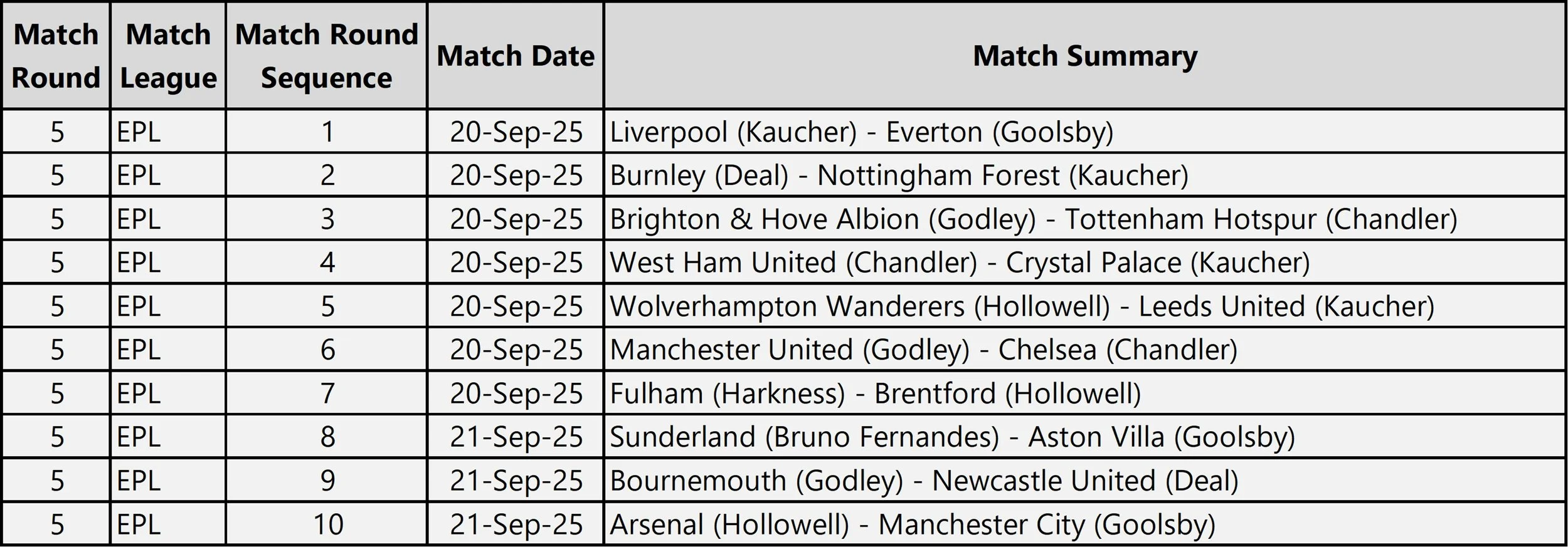 This weekend’s matchups will feature 2 head-to-head matchups between 1st-place Brandon and 2nd-place Geoff, including the Manchester United - Chelsea clash. In other key EPL fixtures, Gary has matchups with both Brians (vs Kaucher in the Merseyside derby, and vs Hollowell in the featured Arsenal - Manchester City tilt). In Serie A, Hollowell and Stuart will meet in the Derby della Capitale between Lazio and Roma.